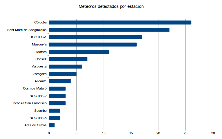 De cualquier forma, la proporción de Gemínidas que han sido detectadas por dos o más estaciones es muy buena, y superior a la de años anteriores:
