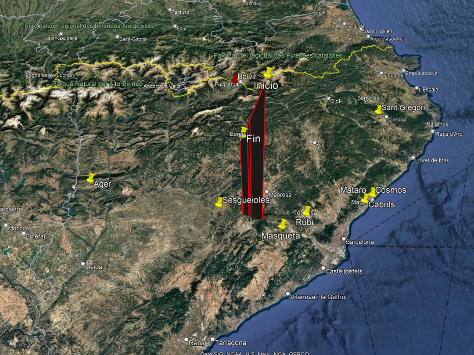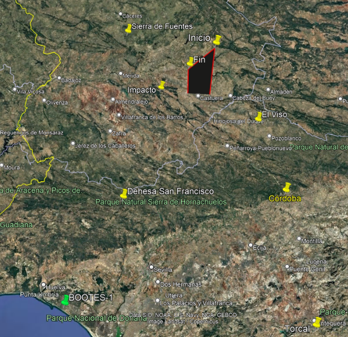 Este sobrevoló Extremadura recorriendo 51Km con rumbo oeste desde 91Km hasta 46Km de altitud.