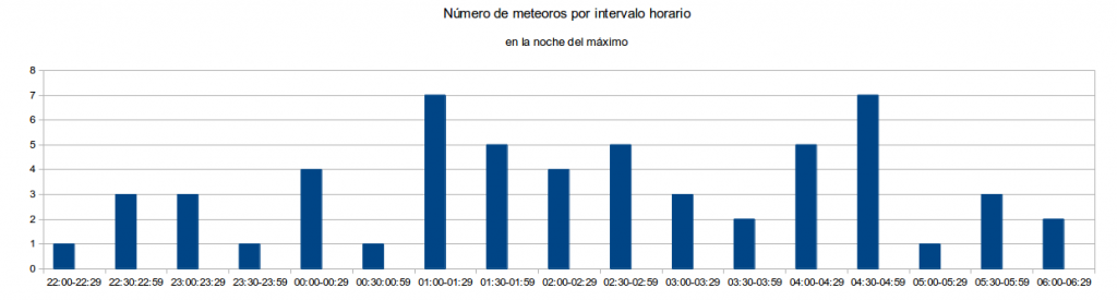 Claramente destaca la noche del máximo. Y si se limita a esa noche, la distribución por horas fue: