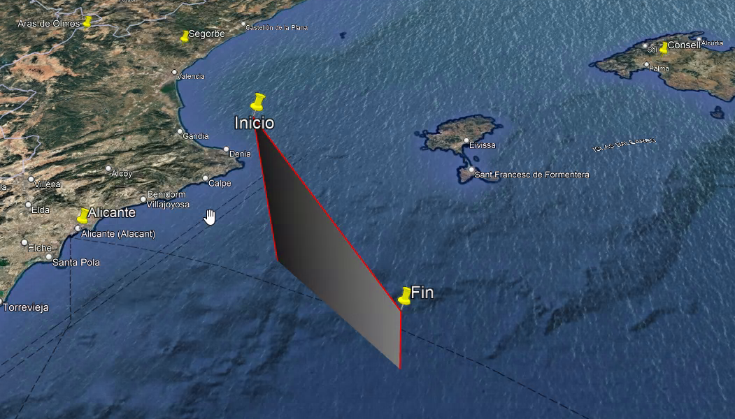 El objeto procedente del sistema solar comenzó a ser grabado en vídeo cuando se encontraba a 46 millas mar adentro desde la ciudad de Alicante y a 69Km de altitud. Recorrió 81km con rumbo sureste a una velocidad media de 46.200Km/h, lo cual queda cerca del límite inferior del rango de velocidades de este tipo de fenómenos. De hecho, brilló durante nada menos que 6.52 segundos, una duración bastante infrecuente. Acabó desintegrándose sobre el Mediterráneo a una altura de 32Km: (Mapa en portada.)